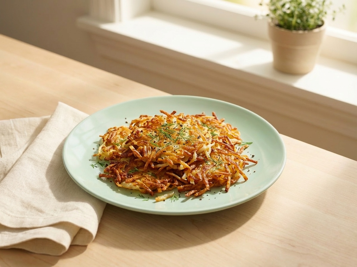 Shredded potatoes, pan-fried golden and crunchy, served with house ketchup
