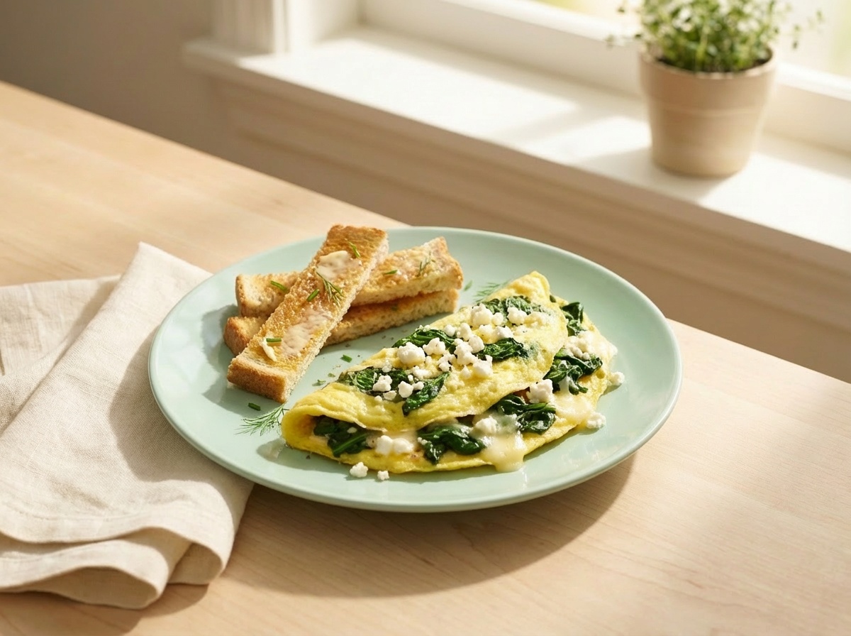 Wilted baby spinach, crumbled feta, sun-dried tomatoes, fresh dill